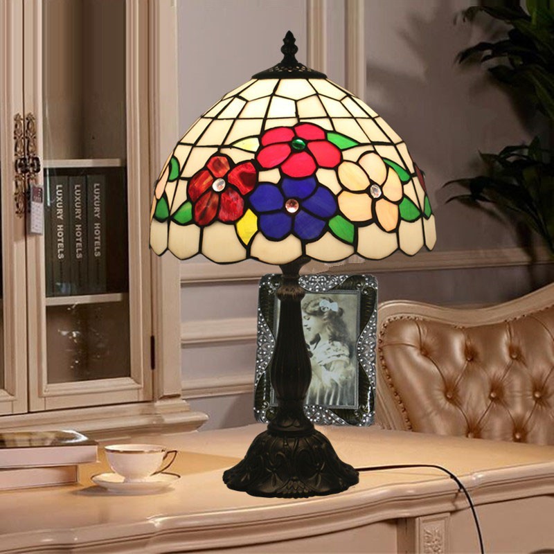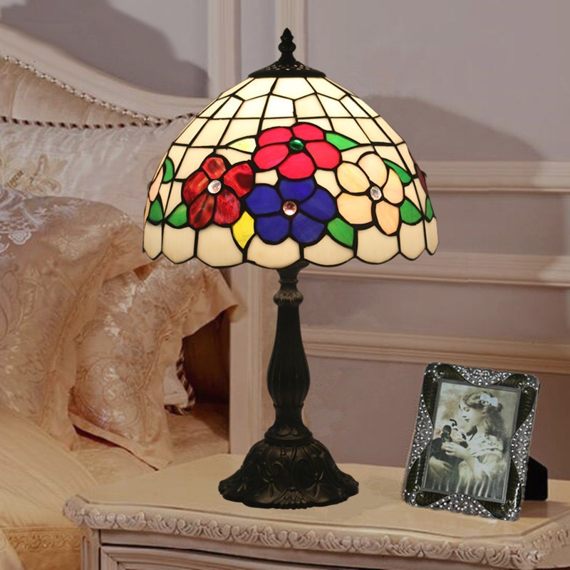 30 cm Europese Tiffany tafellamp van gebrandschilderd glas