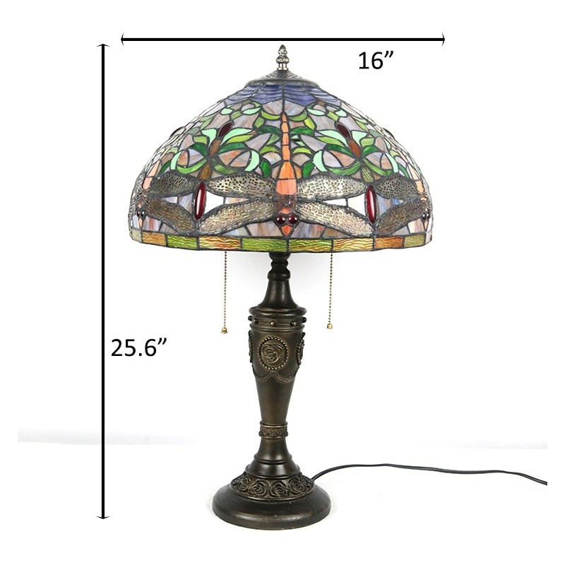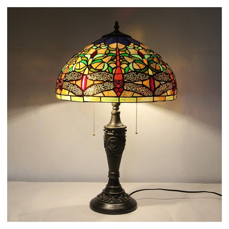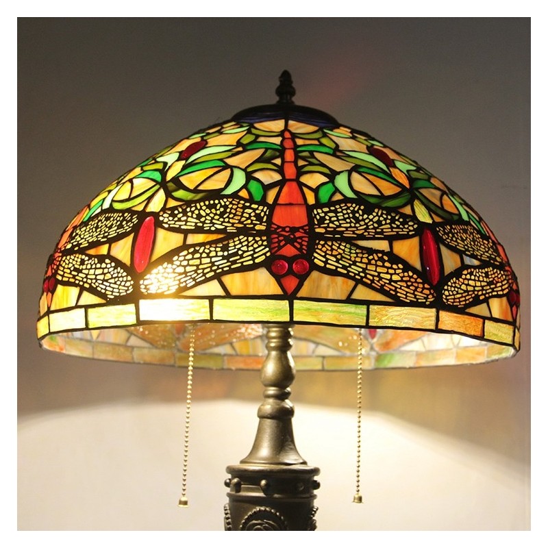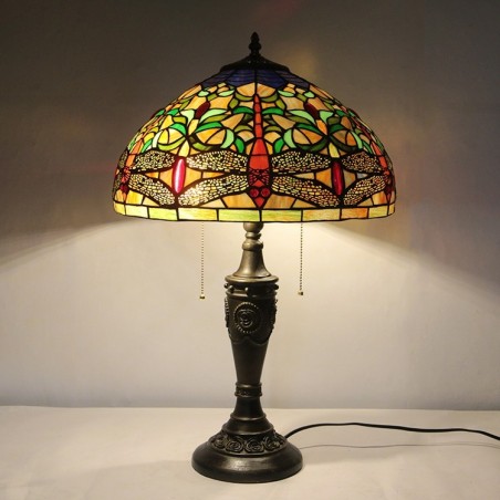16 inch retro Tiffany tafellamp glas-in-lood gele libel lampenkap lichten handgemaakte glazen bureaulamp